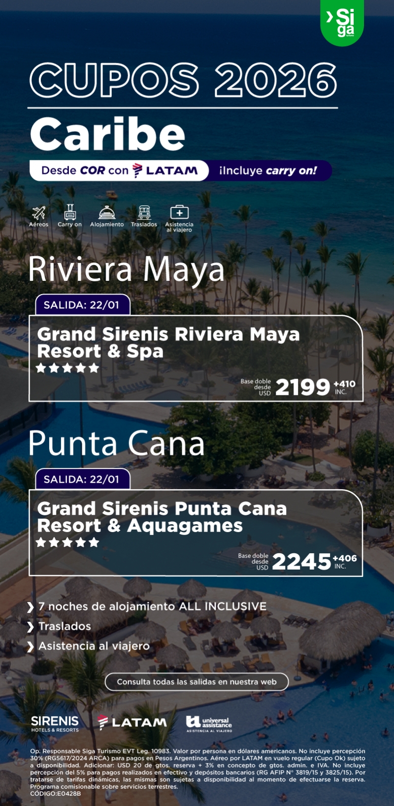 Caribe 2026 con cupos confirmados: Riviera Maya y Punta Cana con Sirenis 🌴