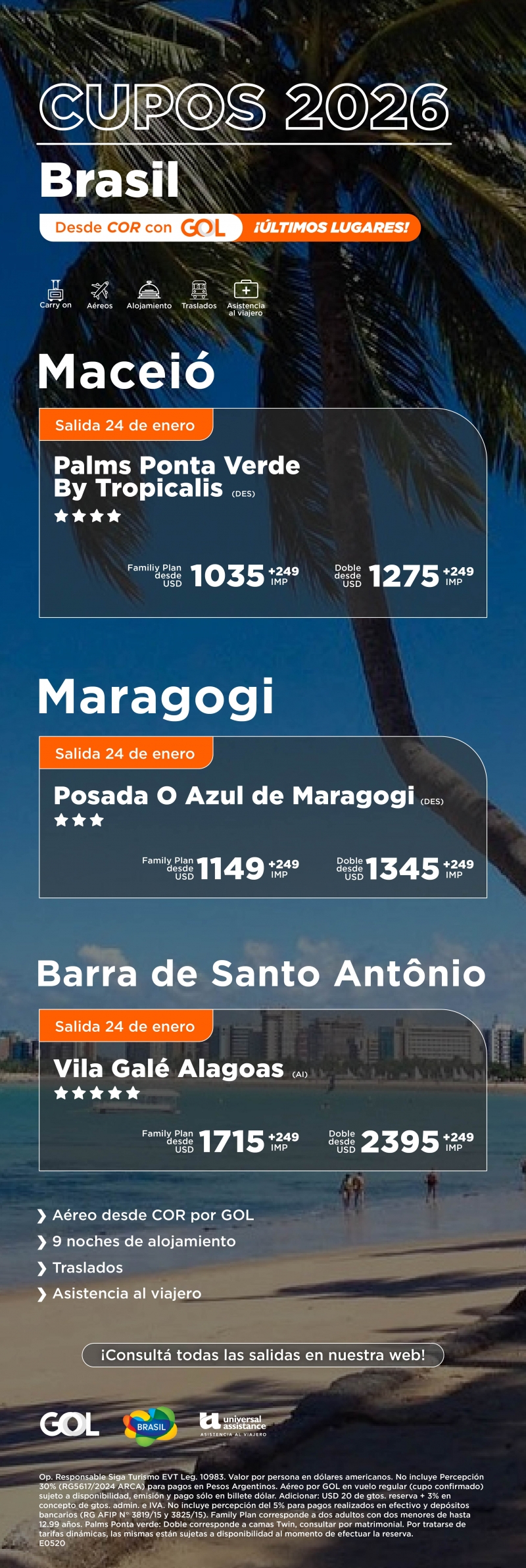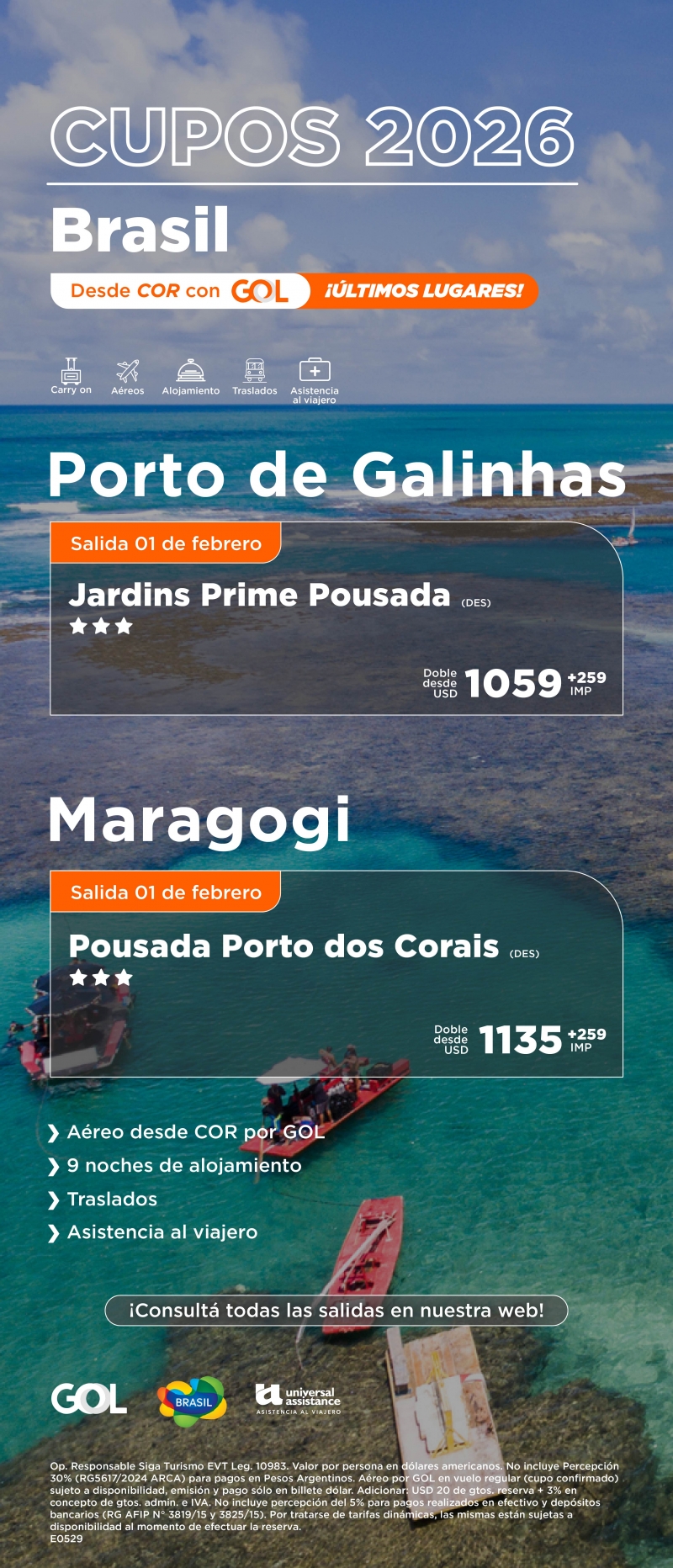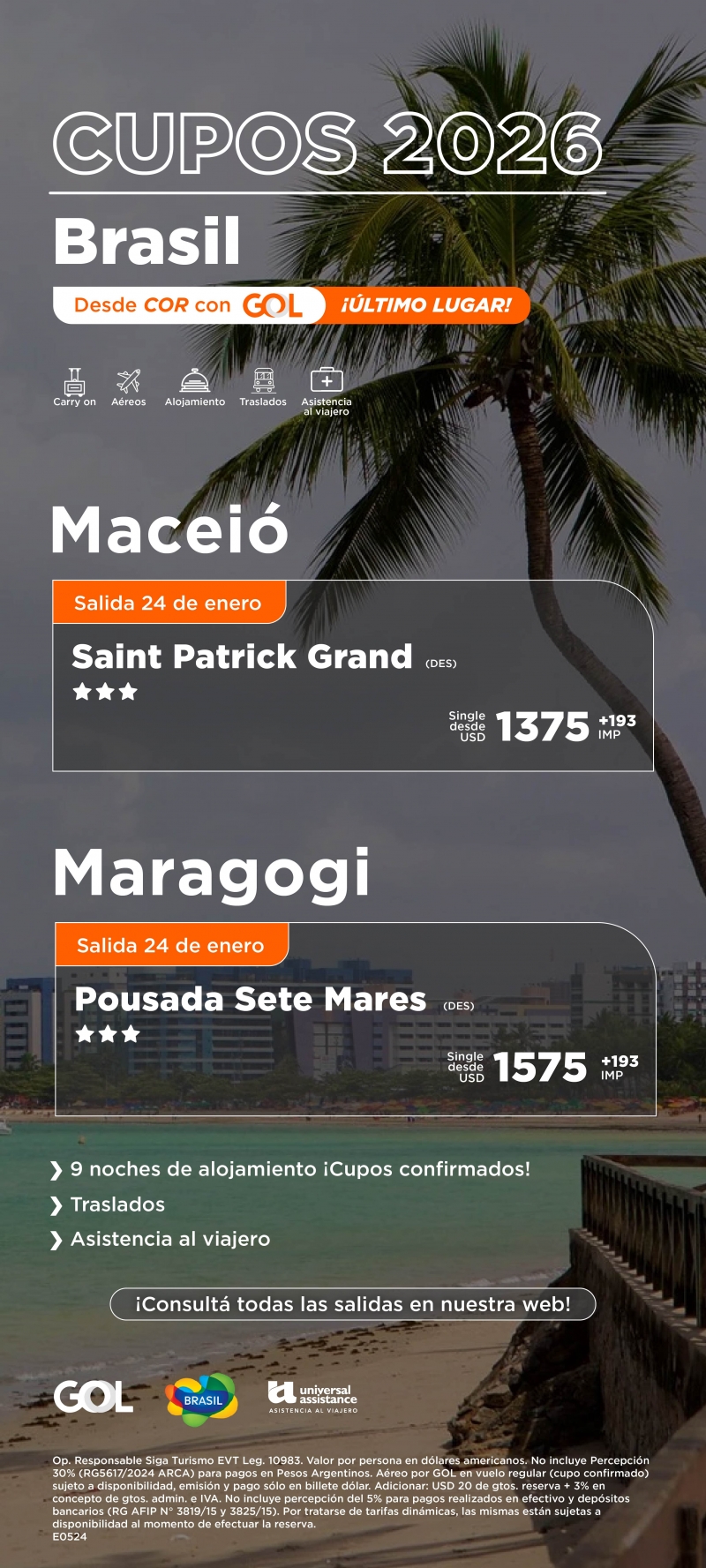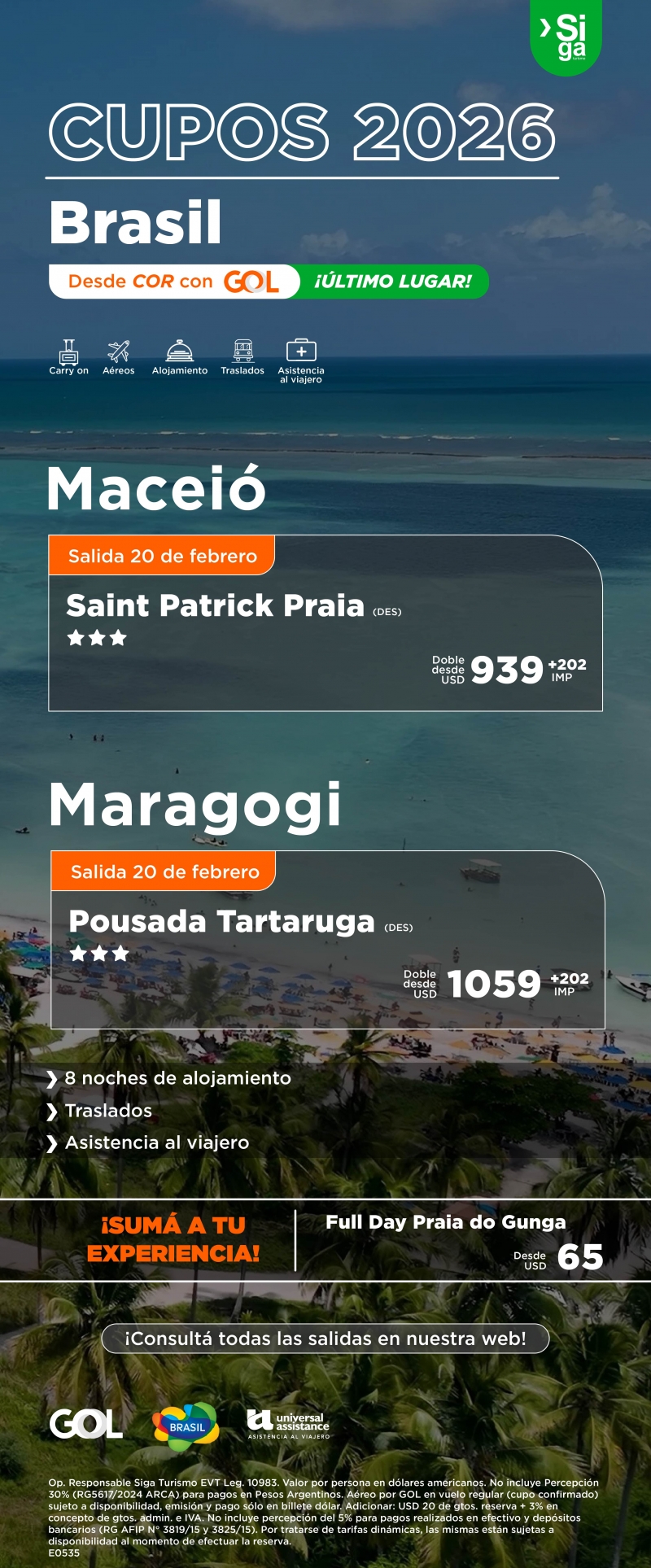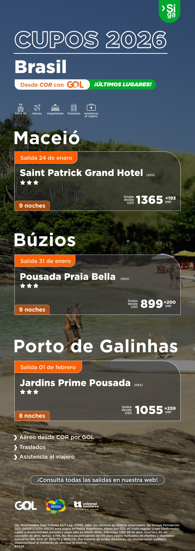 ¡ÚLTIMOS LUGARES! BRASIL en enero y febrero con GOL 🍹