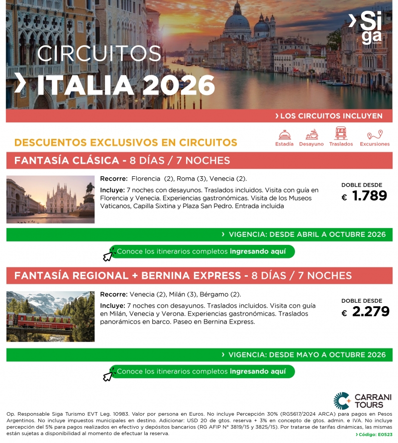Circuitos en Italia 2026: un viaje entre ciudades eternas y paisajes únicos ✨