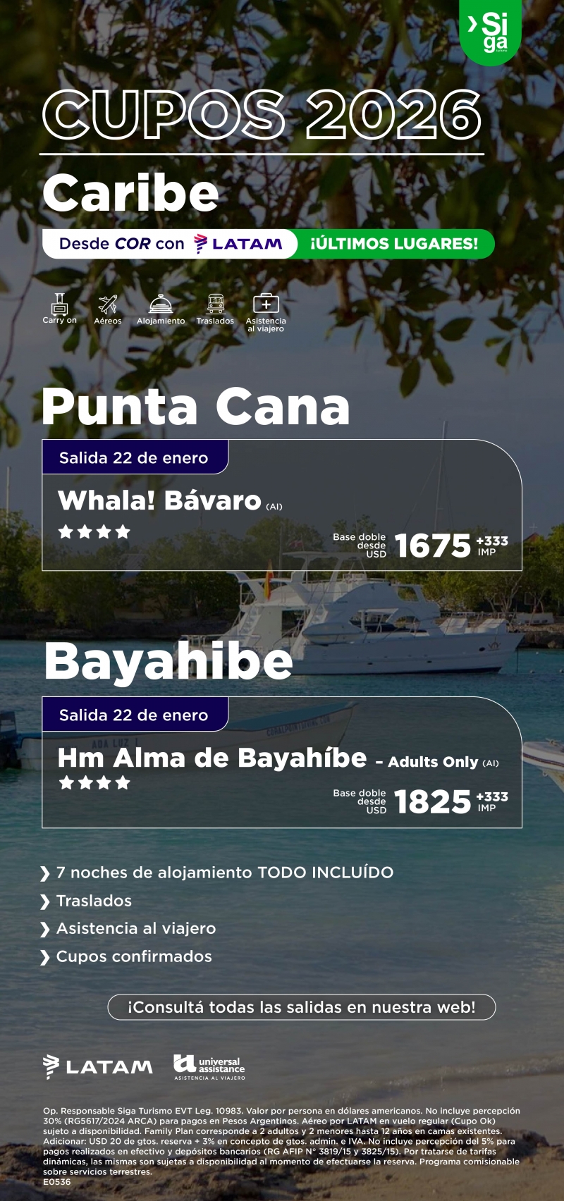 ¡Últimos lugares Caribe 2026! Cupos OK a Punta Cana y Bayahibe🌴