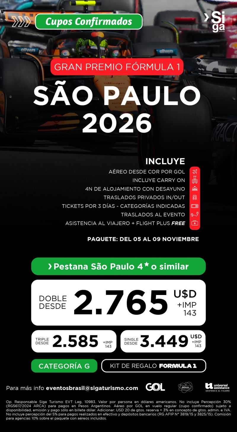 São Paulo 2026 · Fórmula 1 con cupos confirmados 🏎️